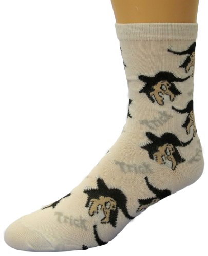 Halloween Cotton Socks, Trick with Witch, Color White, 1 Pair, Size 9-11
